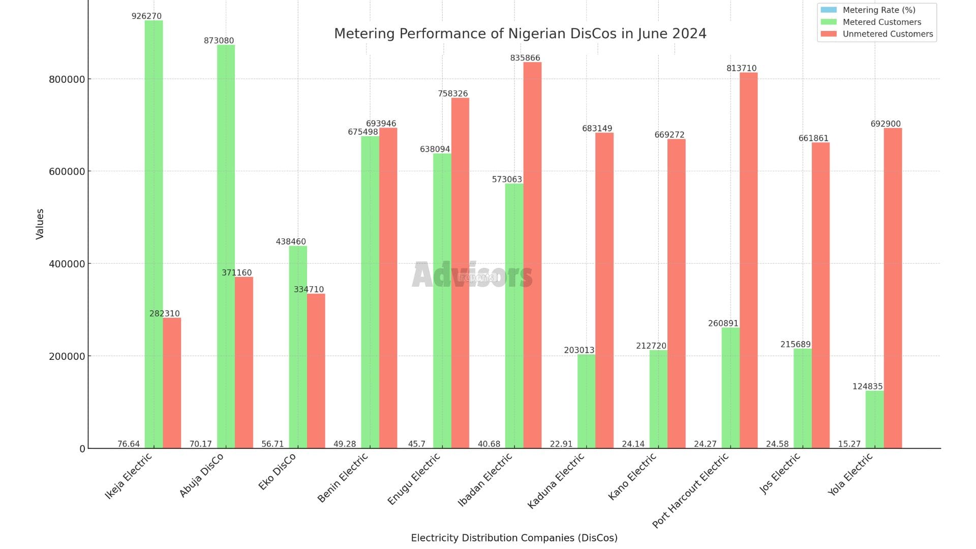 Advisors Reports emphasized that despite the Nigerian Electricity Regulatory Commission (NERC) deregulating the Meter Asset Provider (MAP) scheme effective May 1, 2024, which allows customers to choose their preferred MAPs and meter types, the DisCos have made little progress in improving metering rates.