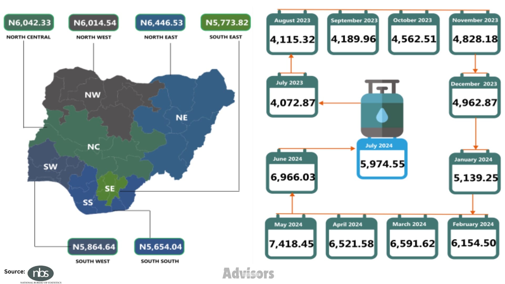 This was revealed by the National Bureau of Statistics (NBS) in its cooking gas price watch for July 2024, analysed by Advisors Reports on Thursday.